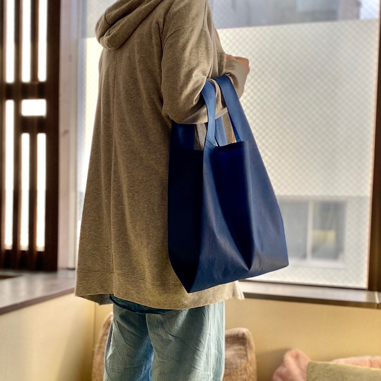 不織布のエコバッグと、それを収納する